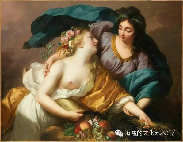 《与女儿朱莉一起的自画像》1786 年,布面油画,105 x 84 cm,巴黎卢浮宫
