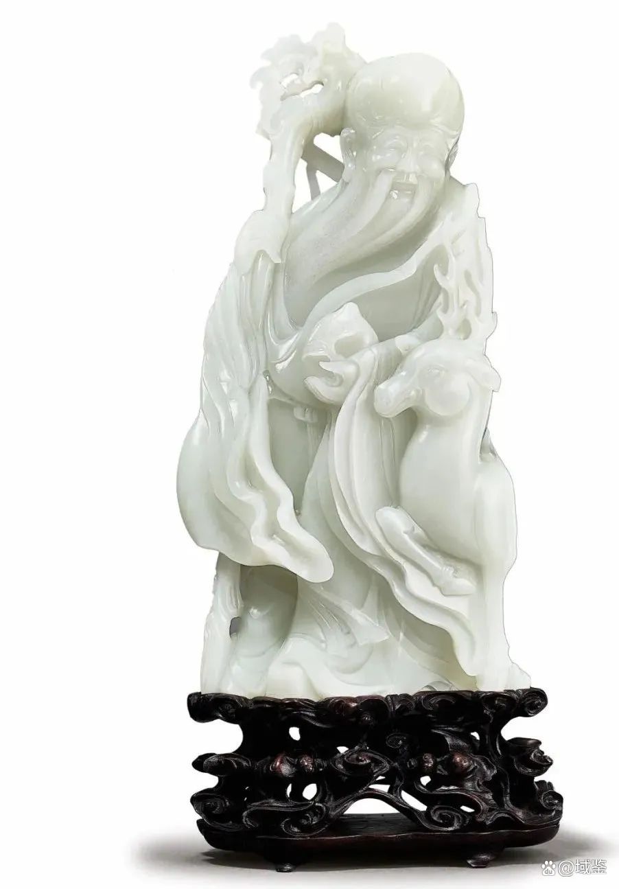 清乾隆 白玉寿老仙鹿摆件 高 27.2 cm.