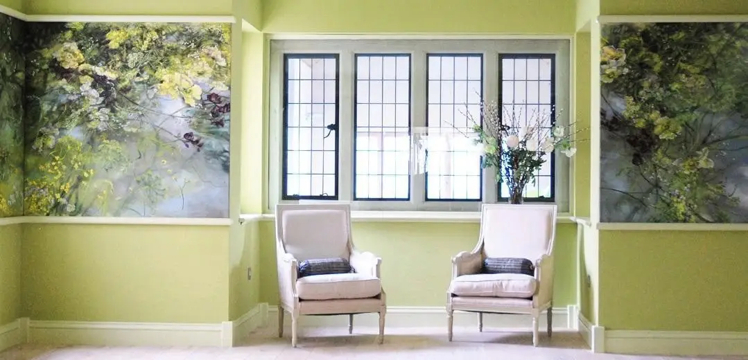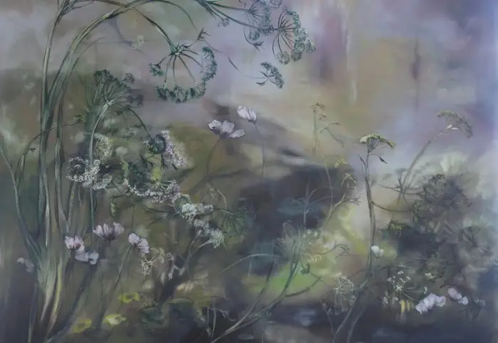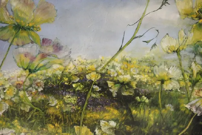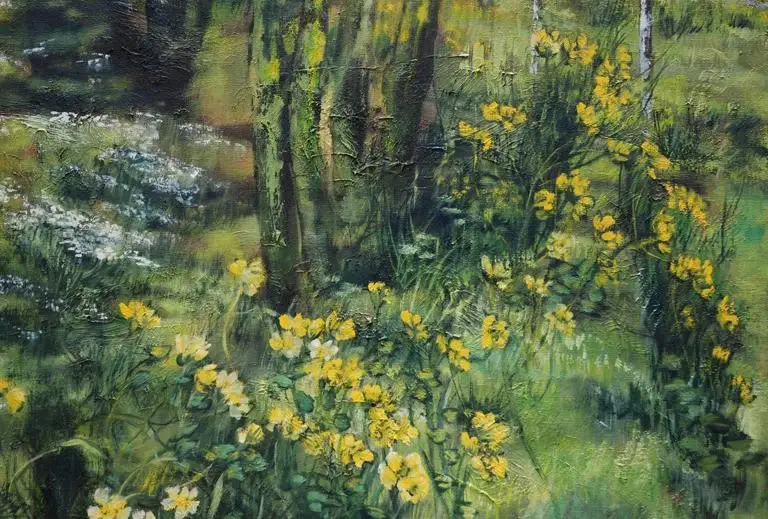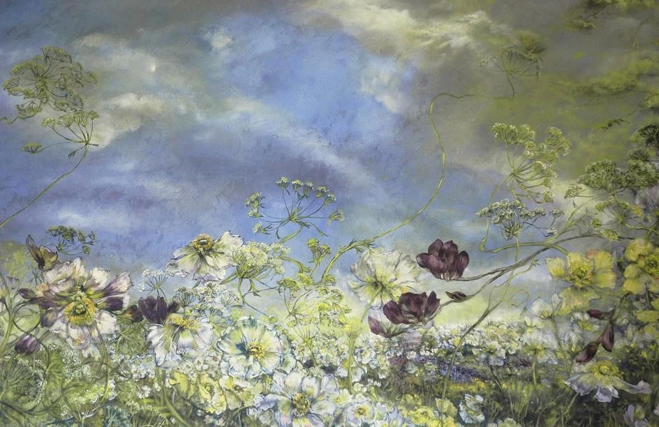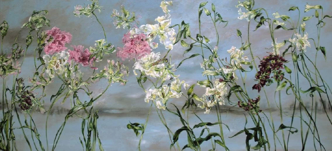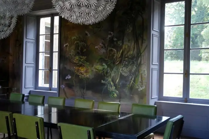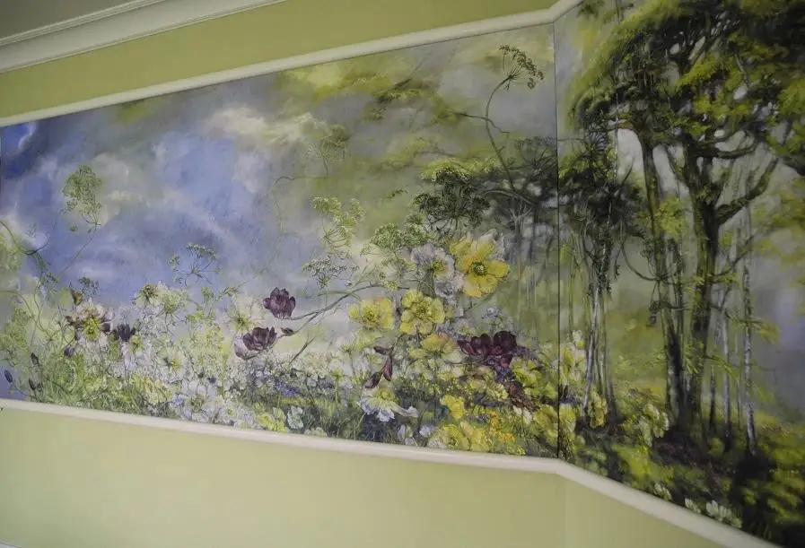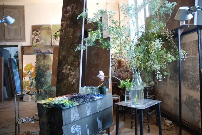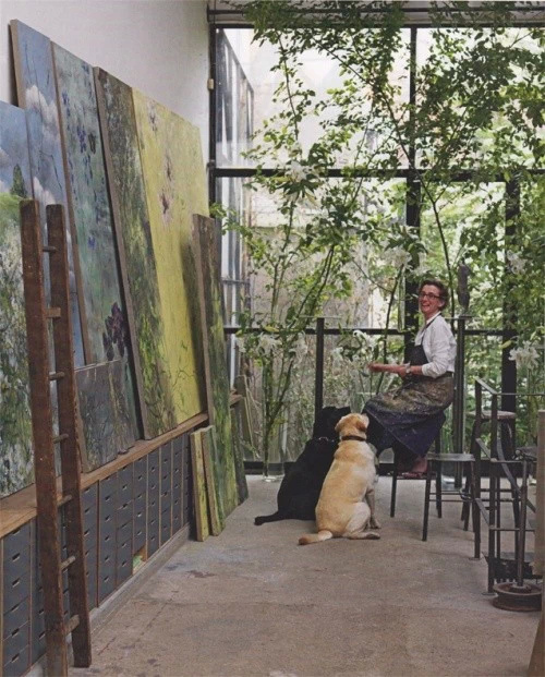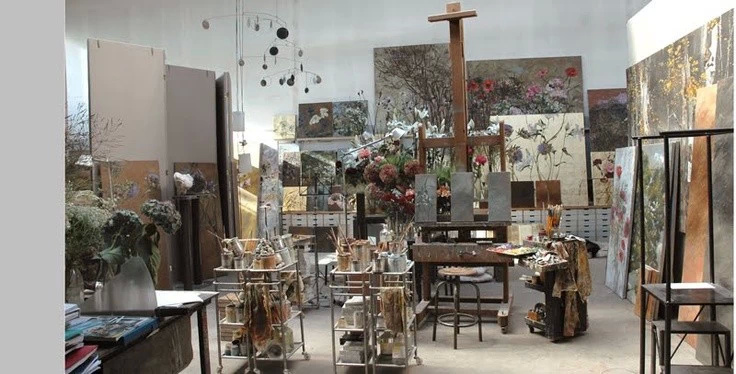 法国女画家克莱尔.巴斯勒,据说特别爱花草植物,不仅将它们画在油画布上,还画在家里的墻壁上,用具上,可谓以花为邻。真是“若有丹青色,愿做花仙人。我为花添彩,花因我生情”。