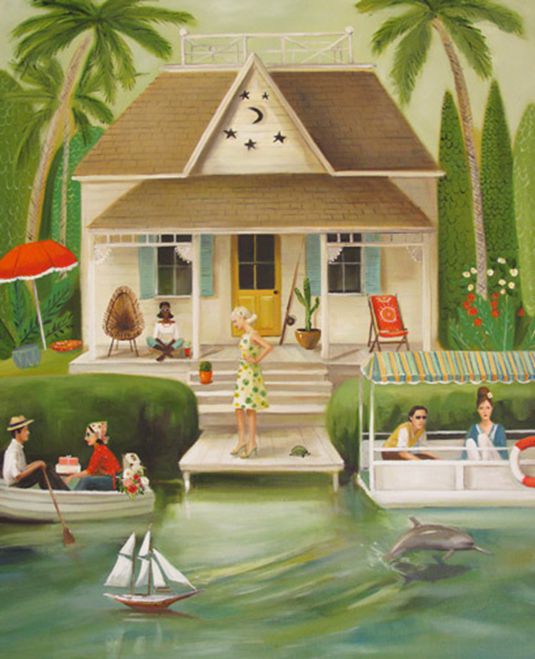 Janet居住在加拿大安大略的一个美丽的小镇斯特拉福德,这里的环境和美好和谐的生活赋予她更多的灵感。一栋小屋就是她的居室和工作室,与丈夫,猫咪和小狗一同在这里创作和生活。她的作品风格是怀旧的,神秘的,幽默的,更记录着一种无法衰退的美丽,赏心悦目,在北美,欧洲,亚洲,澳大利亚都曾有过私人展览,广受大家的好评和赞赏。