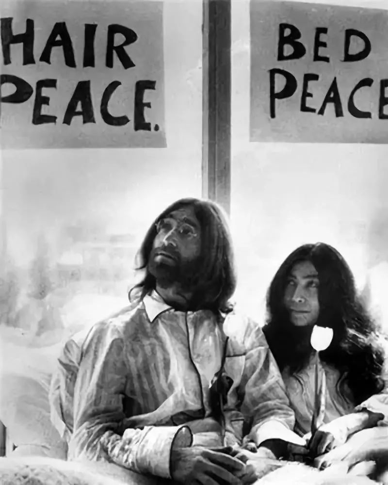 3 月 25 日,这对夫妇穿着睡衣躺在床上整整七天,房间里贴满了反越战标语,全世界的媒体像美军的“B-52轰炸机”一样投入对这场行为艺术的“直播”。