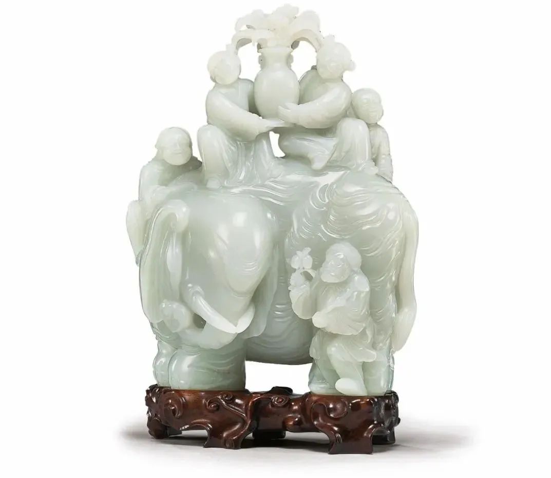 清乾隆 白玉童子洗象摆件 高 19 cm